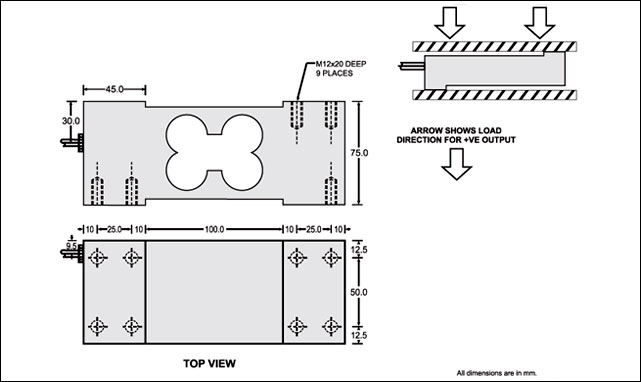 Model ADI 60810 is a Strain Gage based low profile bending beam Load Cell and is ideal for precision single point platform scale applications. It is designed for low eccentric load sensitivity. This supports large platform Size of 1 mtr. x 1 mtr. It is constructed from tool steel for heavy shock loads. |